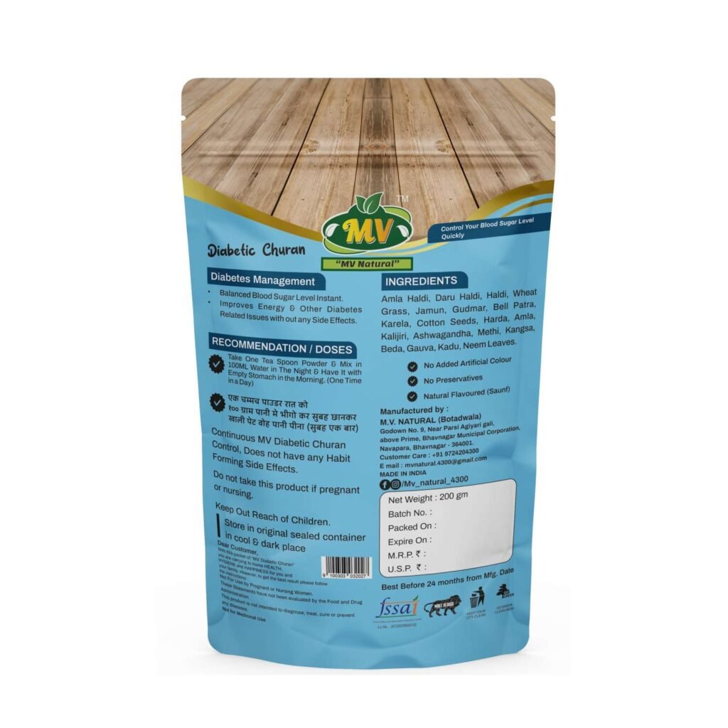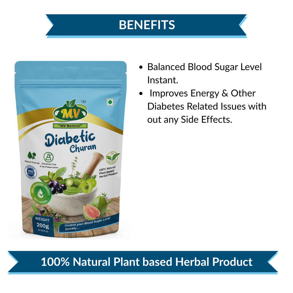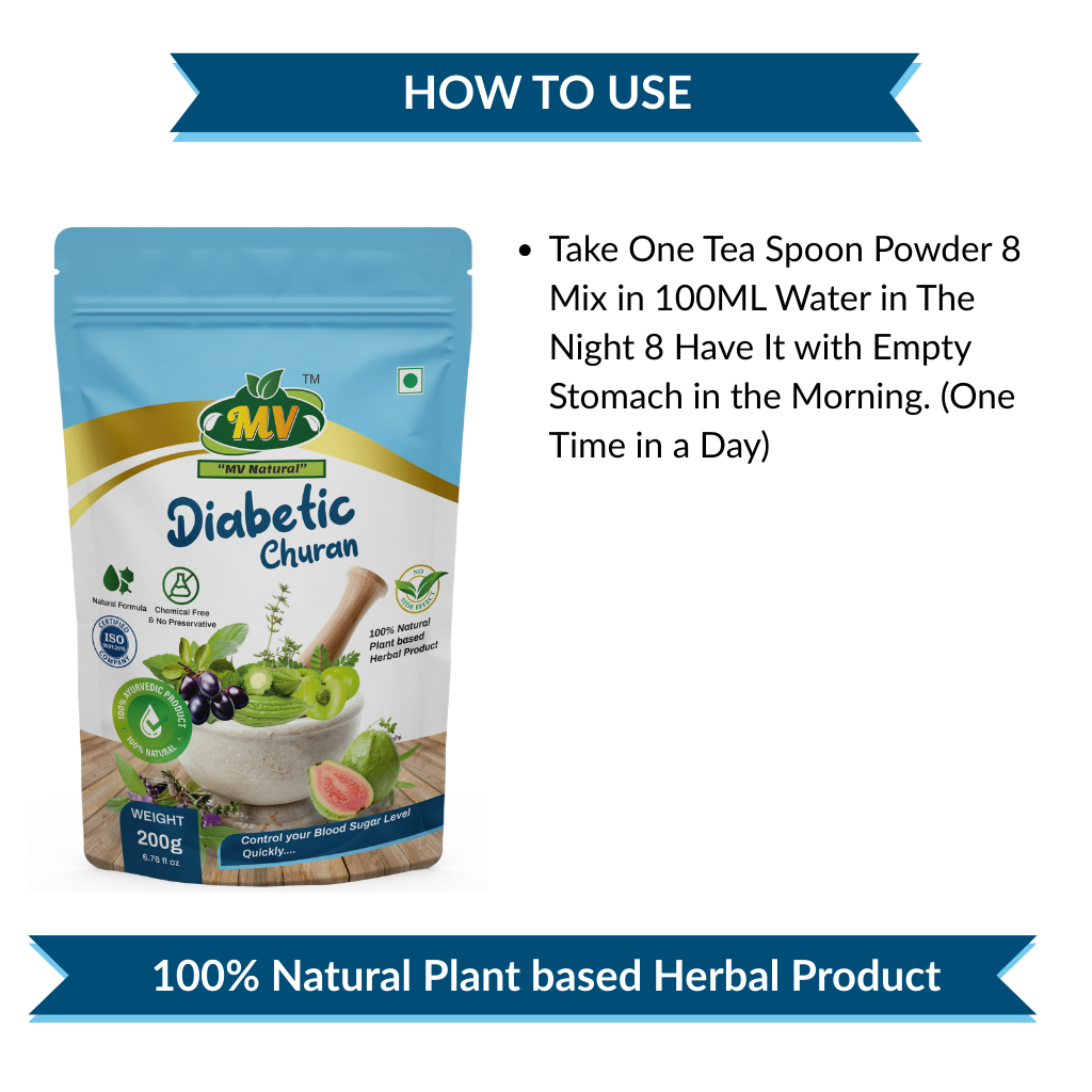 Diabetic Churan is a 100 % plant-based, preservative-free Ayurvedic formula designed to stabilise blood-glucose levels within days. The synergistic blend of Karela, Jamun, Gudmar, Methi and 11 other potent herbs improves insulin sensitivity, curbs sugar cravings and sustains energy all day without crashes or side-effects.
