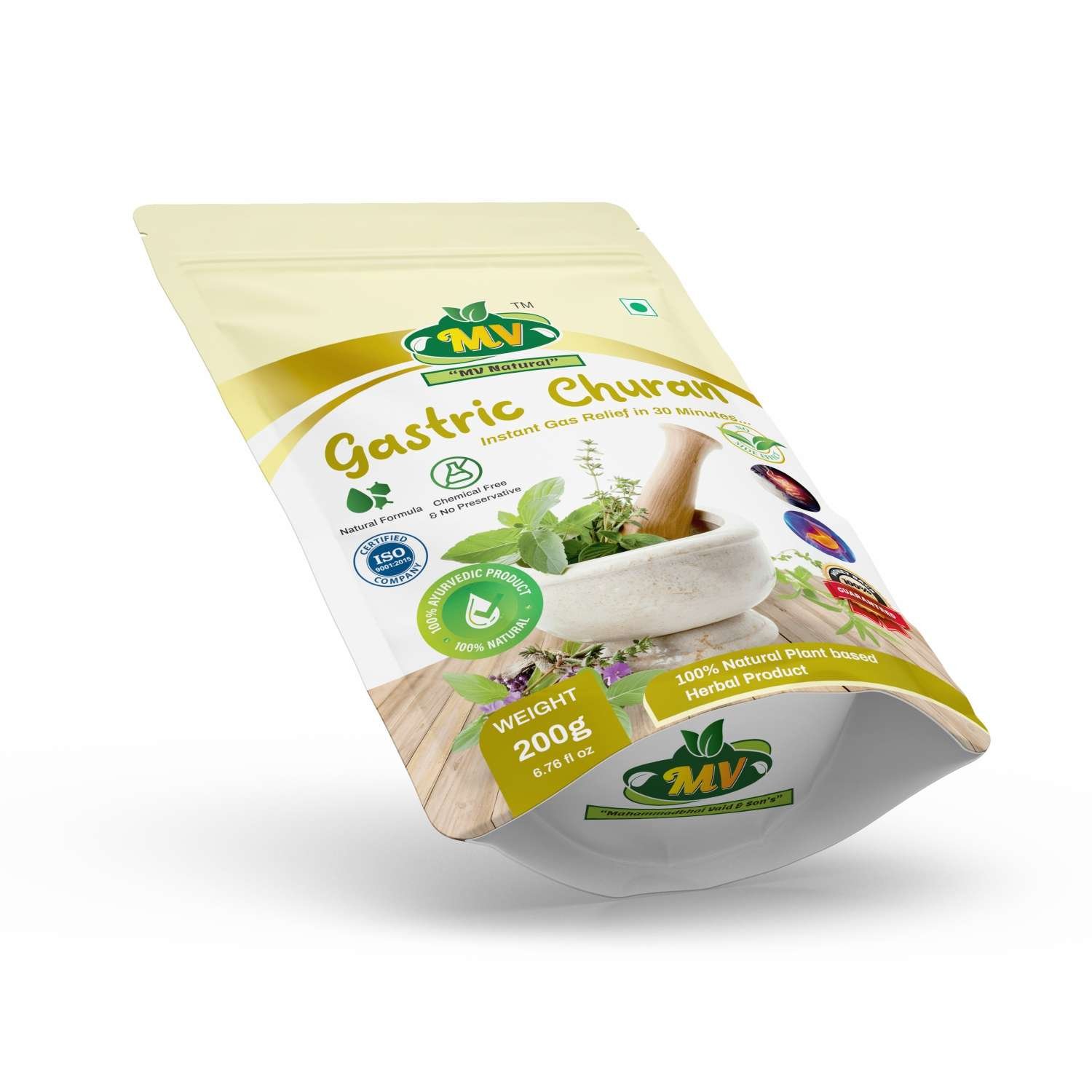 Gastric Churan is a 100 % plant-based, preservative-free Ayurvedic blend that targets trapped gas, bloating and stomach discomfort at its root. One spoon stirred into lukewarm water before bed works overnight to detoxify the gut, regulate bowel movements and wake you up light, pain-free and energised